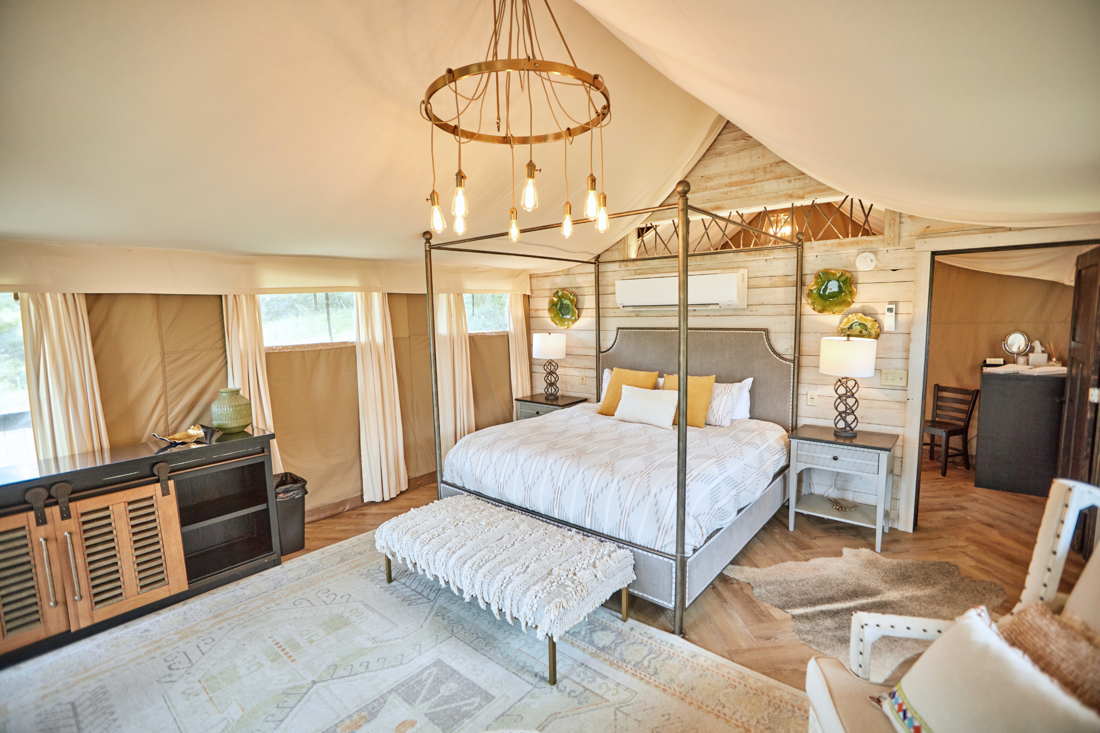 Switchgrass is named after a warm-season bunchgrass used for soil conservation. This tent is furnished with 1 King bed and 1 Queen sofa bed, and can accommodate up to 4 guests.